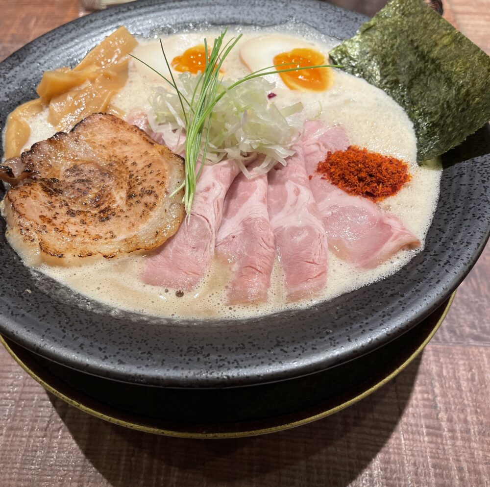 ようやく席につき、名物という特製ラーメン(名物大阪鶏白湯)+トッピングを注文。